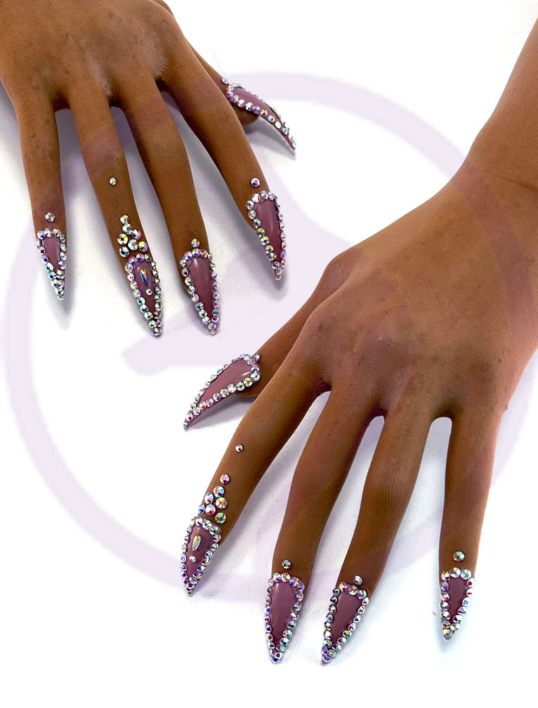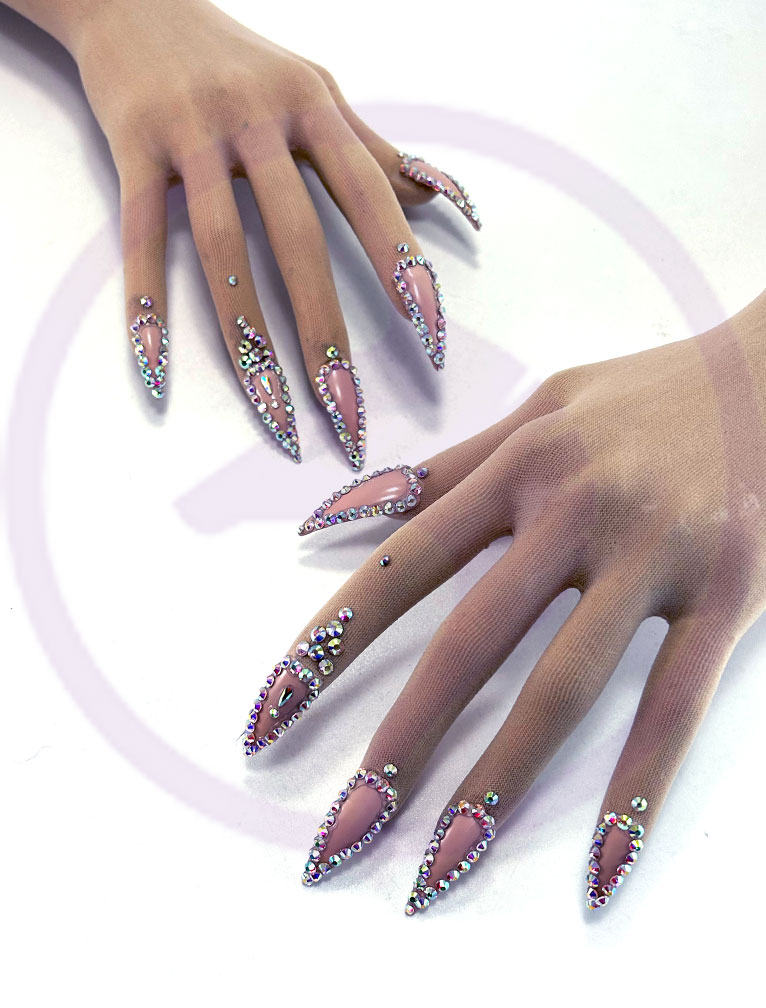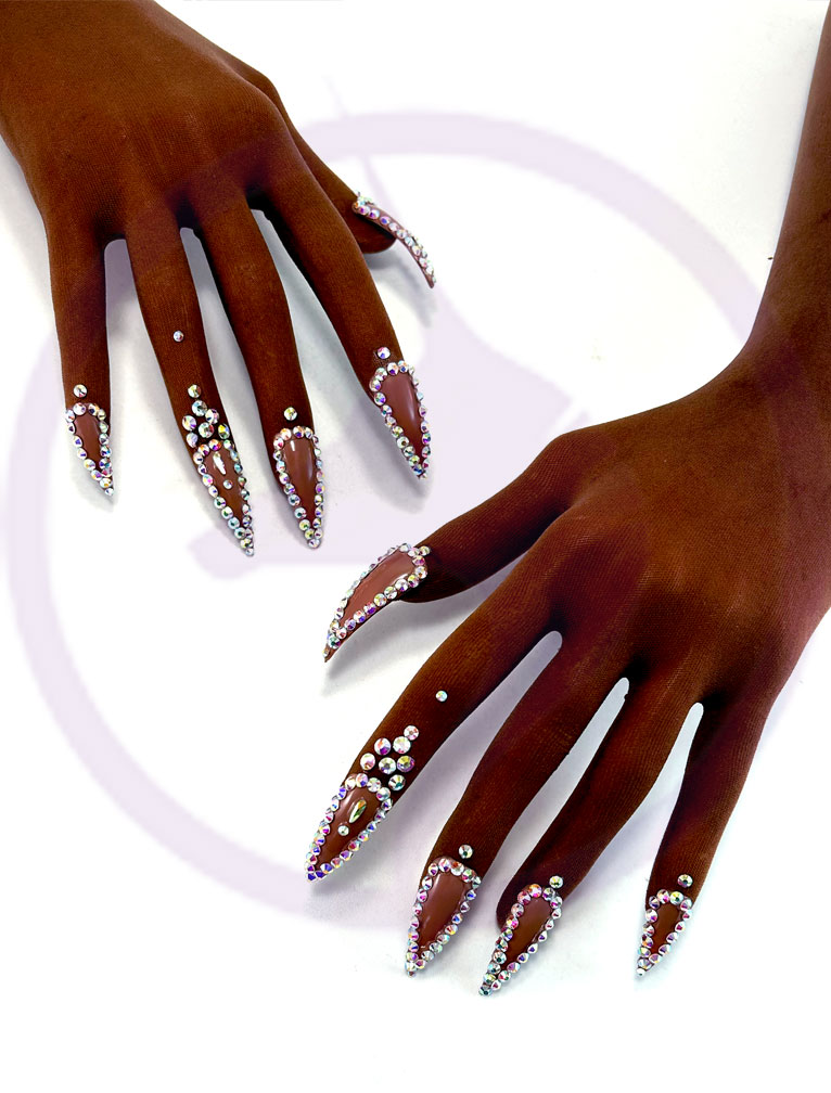 Simple and chic nude nails framed by Swarovski sparkle. Ships NOW. Scroll down for details.