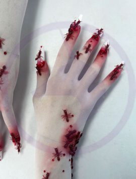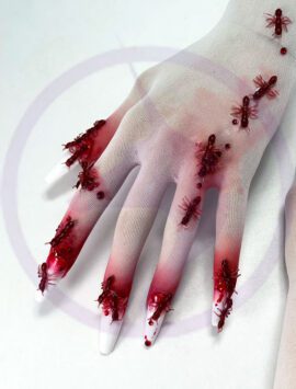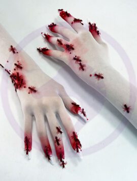 - One pair of White Infected (Red Inked) Second Skin Gloves with matching attached Nails and Ant Embellishments.